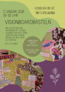 Egal, ob berufliche Ziele, Reisen, Gesundheit oder mehr Me-Time – du gestaltest dein Board ganz nach deinen Vorstellungen und nimmst am Ende dein fertiges Vision Board mit nach Hause.